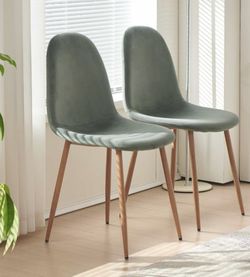 Modern Dining Chairs Set of 2, Green Velvet, Kitchen Chairs, Upholstered Side Chairs with Metal Legs $120New Haven, CT