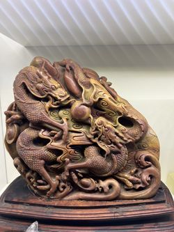 Hand Carved Shousan Stone Double Dragons With Fire Ball$1,500Mesa, AZ