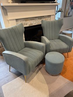 Velvet Wingback Accent Chairs With Poof $350Portland, OR