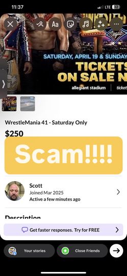 Wrestlemania 41 Ticket Scam!$1Las Vegas, NV