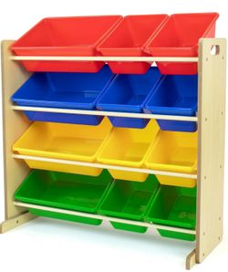 Basics Kids Toy Storage Organizer With 12 Plastic Bins, Natural Wood With Bright Bins, 10.9" D x 33.6" W x 31.1" H$29Woodbridge Township, NJ