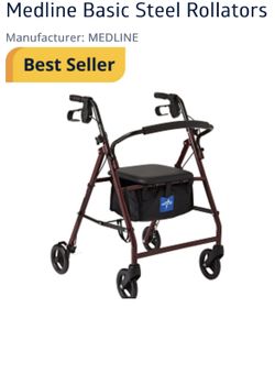 Medline Medline Basic Steel Rollator with 6" Wheels, Burgundy, Knockdown, 1 EA (MDS86850ESKD)$59Woodbridge Township, NJ