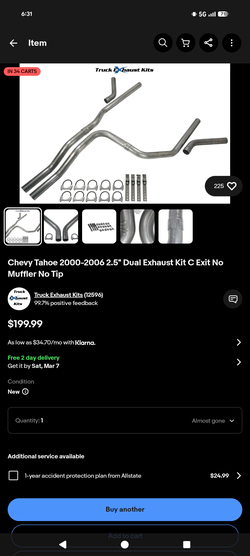 2000-2006 Tahoe/Yukon Dual Exhaust Kit (behind muffler)$160Lexington, TN