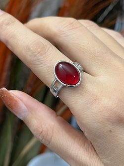 S925 Silver big oval red stone irregular open ring,Silver open ring,Heart Flower Animal Irregular silver open ring,Bohemian Chunky Punk ring, Gift for$24Austin, TX