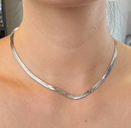 4MM 18” length S925 Silver Herringbone Necklace,Silver Herringbone Necklace,Herringbone snake chain choker necklace,Herringbone Necklace for women $24Austin, TX