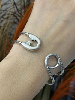Unisex S925 silver big safety pin cuff bangle bracelet,Silver hearts bracelet,Silver irregular cuff bracelet,Everyday bracelet jewelry,Gift for her hi$24Austin, TX