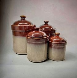 Vtg. Sango Nova Brown Canisters, Set of 4, Stoneware$100San Antonio, TX