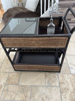 Wood /Rattan bar Cart With Wheels $120Pompano Beach, FL