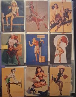 Lot of 9 retro-style pin-up art cards featuring classic calendar / glamour illustrations.$20Kennewick, WA