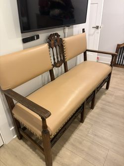 Wood And Leather Bench $200North Brunswick Township, NJ