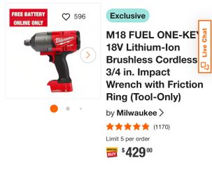 M18 FUEL ONE-KEY 18V Lithium-Ion Brushless Cordless 3/4 in. Impact Wrench with Friction Ring $300Miramar, FL