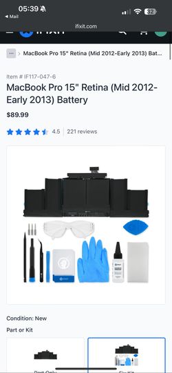 MacBook Pro 15" Retina (Mid 2012-Early 2013) Battery$75Tempe, AZ