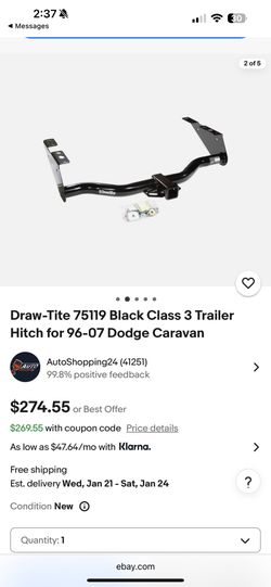 Draw-Tite 75119 Black Class 3 Trailer Hitch for 96-07 Dodge Caravan$240El Paso, TX