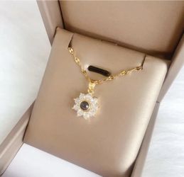 Titanium Steel Sunflower Necklace Gold Tone Zircon Pendant Choker Women Jewelry$25Houston, TX