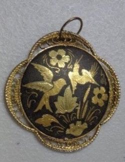Vintage Gold Tone Floral Pendant – Black Enamel Damascene Style – Ornate Oval$45Houston, TX