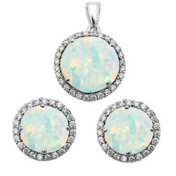 925 Sterling Silver White Opal & White Topaz Oval Halo Necklace Earrings Set$59Houston, TX