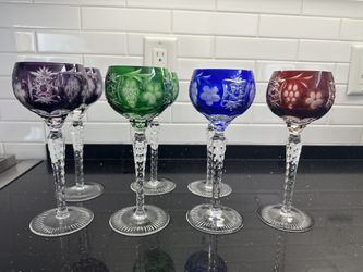 Vintage F. Kisslinger Coloured Cut To Clear Crystal Glasses, Crystal Liquor Glasses$350Long Beach, CA