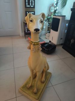 10.5ʺW × 18ʺD × 33ʺH Vintage Italian Pale Yellow Palm Beach Regency Whippet Greyhound Dog Statue on Pillow$1,250Lake Worth, FL