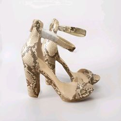 Wild Diva brand women's heels featuring a tan snake print. $19Oakland, CA