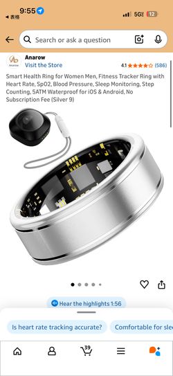 Smart Health Ring – No Subscription Fee (Silver, Size 9)$55Los Angeles, CA