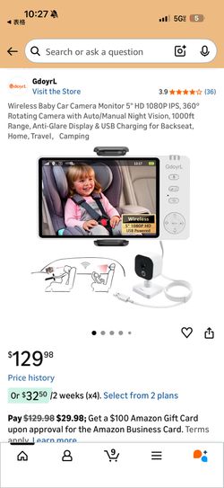 GdoyrL Wireless Baby Car Camera Monitor (5” 1080P)$65Los Angeles, CA