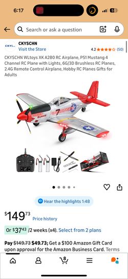 RC Airplane with Remote Control (P51 Style, LED Lights)$85Los Angeles, CA