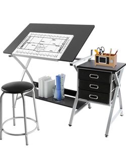 Drafting Desk, Drawing Table for Artists/Adults, Art Desk w/Stool and 3 Slide Drawers, $45Hemet, CA