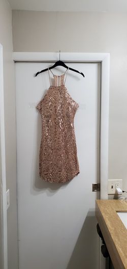 Golden Champagne Sequined Glitter Cutout Evening Mini Dress 👗$25Pompano Beach, FL