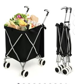 Folding Shopping Cart with Water-Resistant Removable Canvas Bag