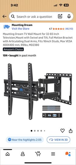 32 to 65 inch full motion swivel n tilt tv wall mount $50Riverside, CA