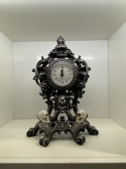 Spooky Nights Halloween Silver & Black Victorian OrnateDesign Skull Head Mantle/Table Clock$70Yorba Linda, CA