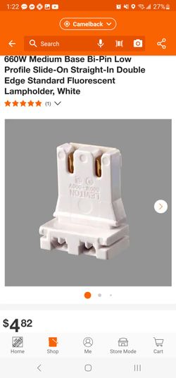 660W Medium Base Bi-Pin Low Profile Slide-On Straight-In Double Edge Standard Fluorescent Lampholder, White$50Phoenix, AZ