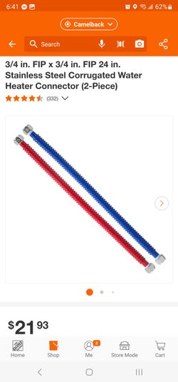 3/4 in. FIP x 3/4 in. FIP 24 in. Stainless Steel Corrugated Water Heater Connector (2-Piece)$30Phoenix, AZ