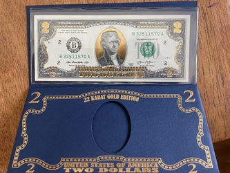 22 Karat Gold Foil 2 Dollar Bill Error Print$500Lakewood, CA