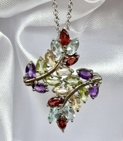 Gorgeous Brand New Multi Gemstone Bypass Leaf Pendant Necklace - 20"$24Miller Place, NY