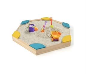 New Costway Outdoor Wooden Sandbox with Seats Backyard Bottomless Sandpit for Kids Aged 3+$25Phoenix, AZ