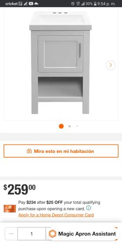 (NEW) **SIZE: 18.5 in. wide x 16.25 in. deep x 33.75 in. high** Glacier Bay Bathroom Vanity with Single Sink in Dove Gray and White Cultured Marble To$140Phoenix, AZ