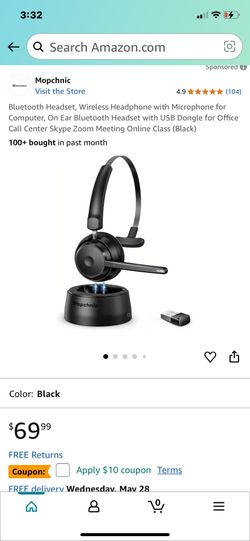 Bluetooth Headset, Wireless Headphone with Microphone for Computer, On Ear Bluetooth Headset with USB Dongle for Office Call Center Skype Zoom Meeting$40Phoenix, AZ