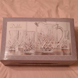 Crystal Drinkware Set. Pitcher And Glasses.$40Westbury, NY