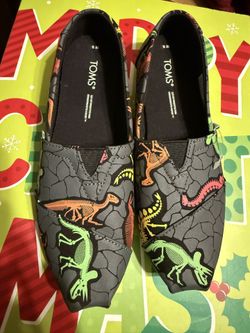 TOMS Alpargata slip-on shoes with a Neon Dino Dig glow-in-the-dark print. $30Sanger, CA