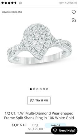 1/2 CT T.W. Multi-Diamond Pear Shaped Frame Split Shank Ring in 10k White Gold$700San Bernardino, CA