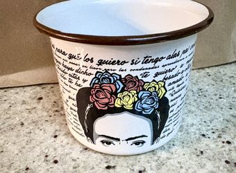 Frida Kahlo Tasa De Peltre Made In Mexico Enamel Mug White Pocillo Peltre Enamel Coffee Cup Traditional $20Rancho Cucamonga, CA