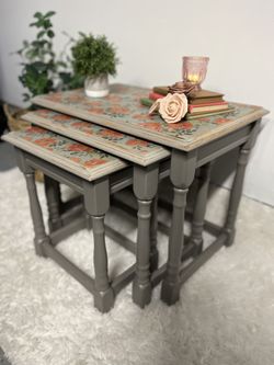 Rustic Floral Wood Nesting Tables$125Toms River, NJ