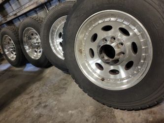 Set 19.5 X 7.50 VISION ALUMINUM WHEELS AND TIRES 245 70r 19.5 DIRECT BOLT GM FORD DODGE Excellent $800Fort Worth, TX