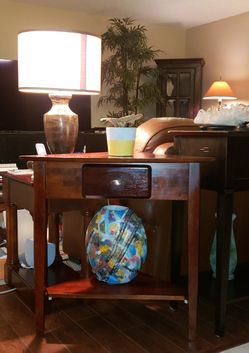 Solid Wood Triangular (corner) Table; Lower Shelf; Single Front Drawer $40$40Palm Springs, CA