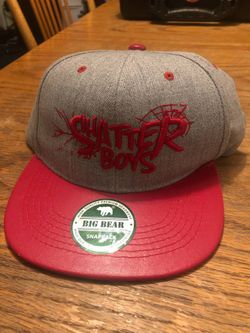 Men’s Shatter Boys Big Bear Logo Red Leather / Gray Snap Back Hat M-L$20Adelanto, CA