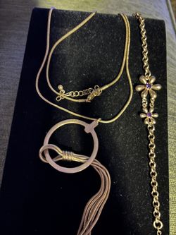 Long Rolegold Pendent And Stud Stone Breslet.$15Bellwood, IL