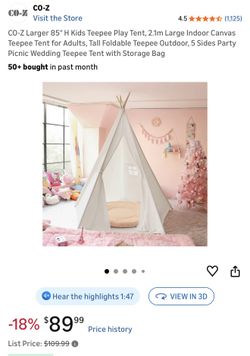 CO-Z Larger 85" H Kids Teepee Play Tent$50Dallas, TX