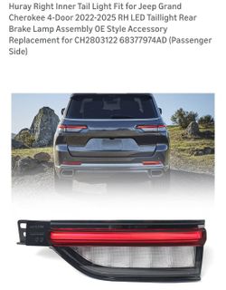 Huray Left Inner Tail Light Fit for Jeep Grand Cherokee 4-Door 2022-2025 LH LED Taillight Rear Brake Lamp Assembly OE Style Accessory Replacement $88Houston, TX