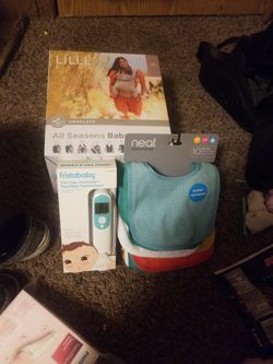 Baby Carrier ,3in 1 Forehead Touchless Thermometer, Baby Bibs $80Yelm, WA